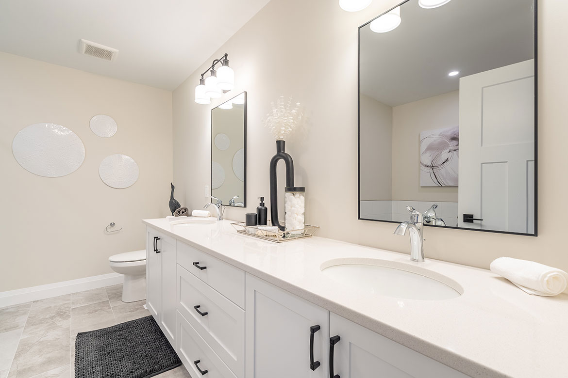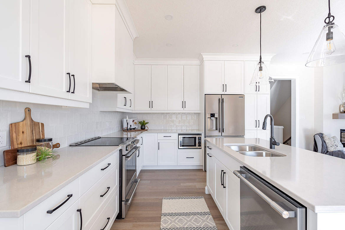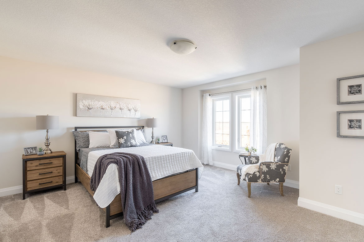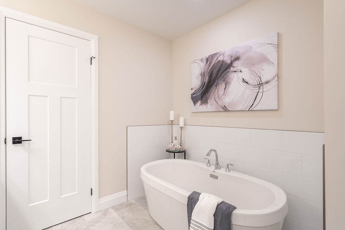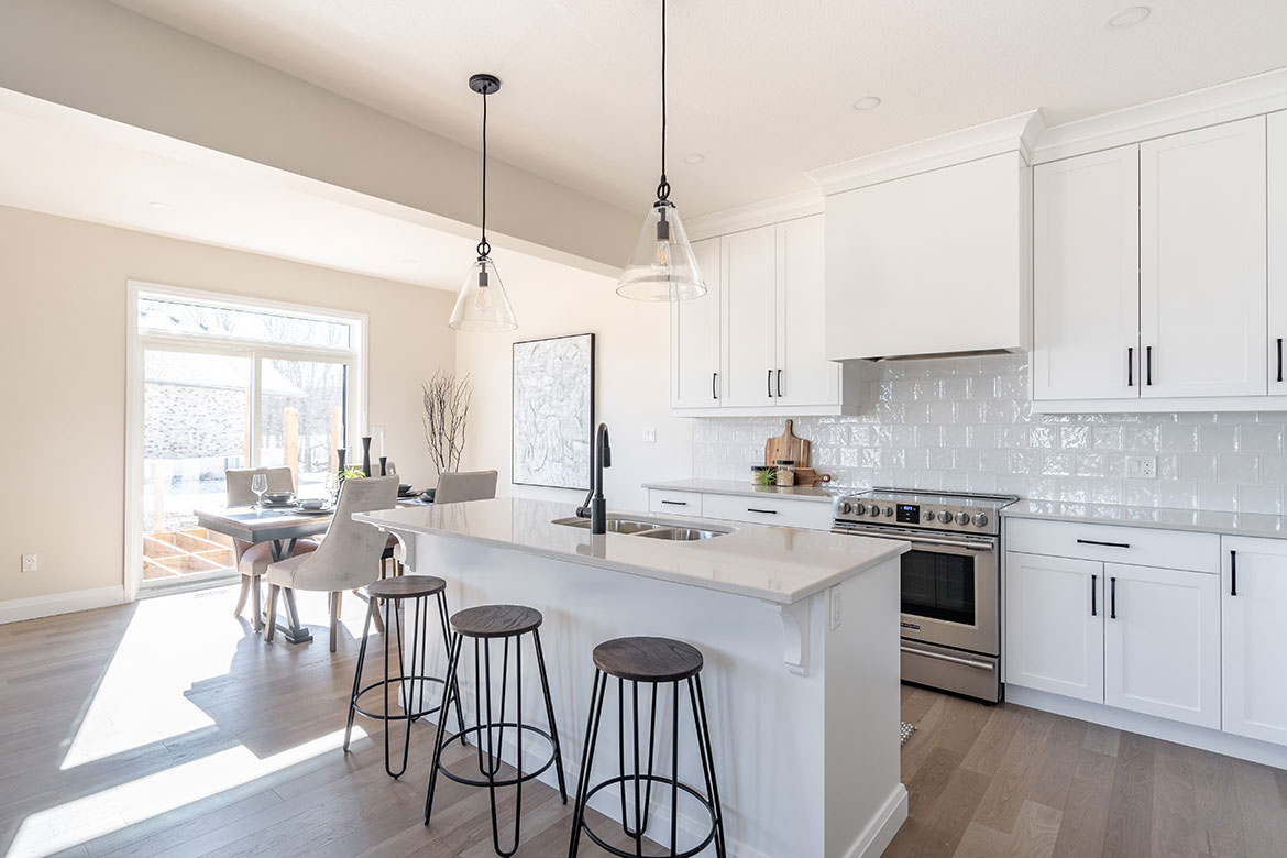At 49 Royal Dornoch, our professional designers bring timeless tradition to life with carefully curated interiors. Spacious, open concept living areas exude a natural ambiance welcoming a harmonious flow from room-to-room. Natural light streams in through large windows that also showcase beautiful scenic views. High end finishes include gourmet kitchens with quartz countertops, premium hardwood and ceramic flooring, luxury ensuites with a tiled shower and soaker tub, custom cabinetry and hood vent, decorative lighting and strikingblack accents throughout.